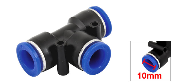 Product Name Quick Fittings Type T Shape Main Material Plastic Total Size 5 x 1.8 x 3.4cm/ 1.9" x 0.7" x 1.3"(L*W*H) Connecting Dia(Each) 10mm/ 0.39" Color Black & Blue Weight 12g Package Content 1 x Quick Fittings - Reviews