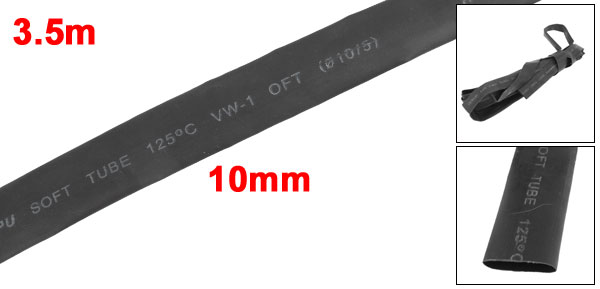10mm Dia. Heat Shrinkable Tube Shrink Tubing 3.5m Length Black