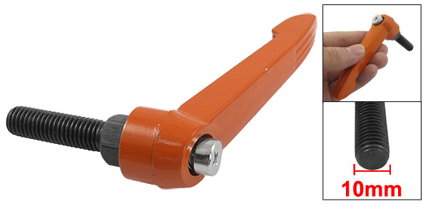 Details10mm Dia Male Thread Metal Machine Fixing Adjustable Handle  Product Name Adjustable Handle Material Metal Color Black, Orange Thread Diameter 10mm/ 0.4" Thread Length 35mm/ 1.37" Lever Length 80mm/ 3.1" Overall Size 70 x 95mm/ 2.7" x 3.7"(L*H) Net Weight 105g Package Content 1 x Adjustable Handles
