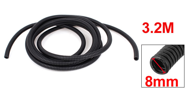 10mm Diameter Black Flexible Corrugated Conduit Tube Pipe Hose Tubing 3.2M 10Ft