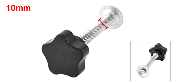 Product Name Star Knob Type Screw On Head Diameter 40mm / 1.6" Thread Length 70mm/ 2.8" Thread Diameter 10mm / 0.4" Metal Plate Dia 25mm / 1" Total Height 100mm/ 3.9" Material Metal, Plastic Color Silver Tone, Black Weight 73g Package Content 1 x Star Knob - Reviews