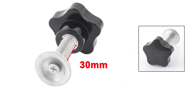 Product Name Star Knob Type Screw On Head Diameter 40mm / 1.6" Thread Length 30mm/ 1.2" Thread Diameter 10mm / 0.4" Metal Plate Dia 25mm / 1" Total Height 58mm/ 2.3" Material Metal, Plastic Color Silver Tone, Black Weight 50g Package Content 1 x Star Knob - Reviews