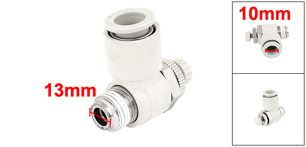 Product Name Pneumatic Speed Controller Inner Diameter (Gray End) 10mm / 0.39" Thread Outer Diameter 13mm Thread Size 1/4" PT Total Size 40 x 38 x 18mm / 1.6" x 1.5" x 0.71" (L*W*T) Material Plastic, Metal Color Gray, Silver Tone Weight 38g Package Content 1 x Pneumatic Speed Controller - Reviews