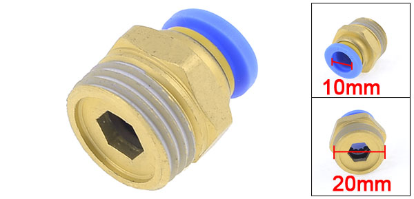 Item Name Quick Fittings Model JPC10-04 Material Metal, Plastic Color Gold Tone, Black Medium Air, Water Thread Size 1/2" PT Thread Diameter 20mm Inner Diameter(Blue End) 10mm Total Size(Each) 24 x 21mm/0.94" x 0.83"(L*W) Weight 27g Package Content 1x Quick Fittings - Reviews