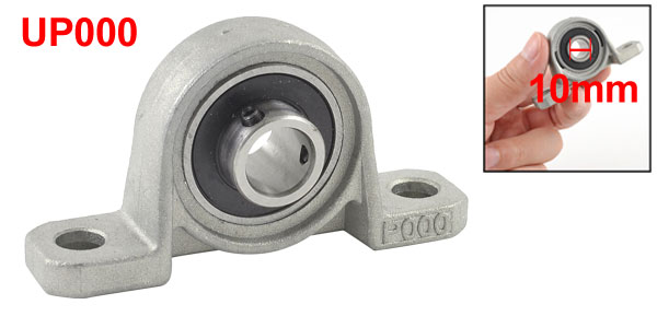 Details10mm Inner Dia Stainless Steel Self-adjust Pillow Block Ball Bearing  Product Name Pillow Block Bearing Bearing Model UP000 Material Stainless Steel, Rubber Color Silver Tone, Black Bearing Internal Diameter 10mm/ 1" Bearing Outside Diameter 25mm/ 1" Bearing Width 15mm/ 0.6" Pillow Block Size 65 x 15 x 30mm/ 2.6" x 0.8" x 1.2" (L*W*T) Mount Hole Size 7 x 7mm/ 0.3" x 0.3" (L*W) Overall Height 30mm/ 1.2" Net Weight 66g Package Content 1 x Sealed Ball Bearing