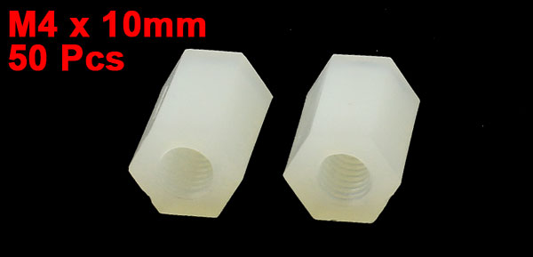 10mm M4 Female/Female Nylon PCB Spacer Hex Stand-Off Pillar Nut 50Pcs