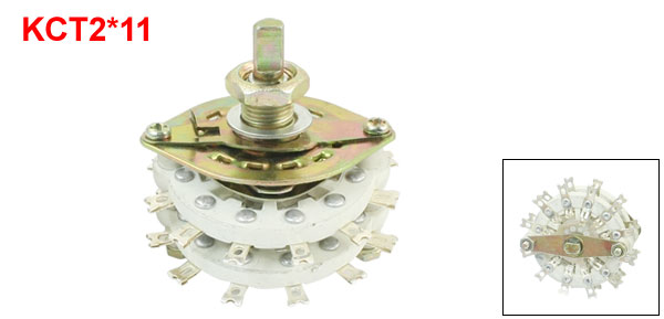 Product Name Rotary Switch Model KCT2*11 Material Metal, Plastic Dimensions(knob not included) 55 x 55mm / 2.2" x 2.2"(Max.D*H) Fit Mounting Hole Diameter 10mm / 0.4" Shaft Diameter 6mm/0.24" Pin Number 24 Contact Type 2 Pole 11 Position Total Weight 60g Package Content 1 x Rotary Switch - Reviews