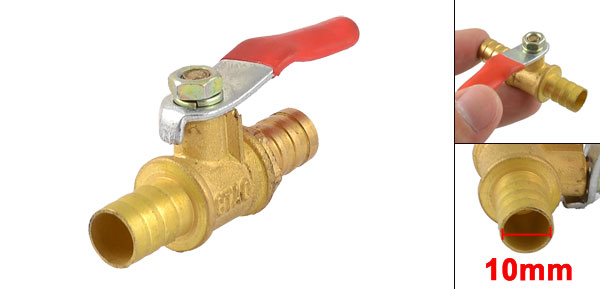 Product Name Gas Ball Valve Material Metal, Plastic Color Gold Tone, Red Diameter 10mm/ 0.39"(Outside) Overall Size 48 x 47 x 27mm/ 1.89" x 1.85" x 1.06"(L*W*H)