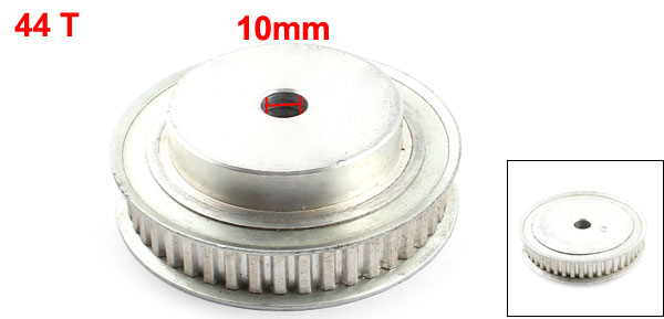 Main Color Silver Tone Brand DMiotech Overall Size 75 x 25 mm / 3" x 1" (D*H) Country of Manufacture CHINA Fit Belt Width 12mm/0.47" Type XL Material Aluminum Alloy Bore Diameter 10mm/0.4" Net Weight 222g Package Content 1 x Timing Pulley Tooth Number 44 Outside Diameter 50mm/2" Pitch 2mm/0.08" - Reviews