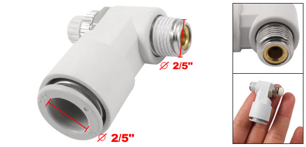 Product Name Pneumatic Speed Controller Fit Tube 10mm / 2/5"(0.394") Male Thread OD 10mm / 2/5"(0.394") Overall Size 38 x 19 x 33mm / 1.5" x 0.7" x 1.3"(L*W*H) Material Plastic, Metal Color As Picture Show Weight 22g Package Content 1 x Pneumatic Speed Controller - Reviews