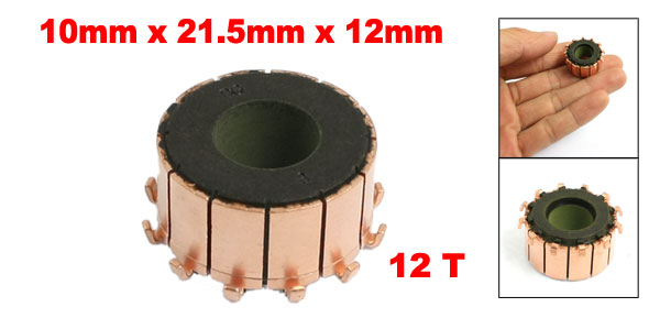 Product Name Commutator Color Copper Tone Material Copper, Steel Size 10 x 21.5 x 12mm / 25/64" x 27/32" x 15/32" (Shaft D*OD*H) Gear Tooth Quantity 12 Pcs Net Weight 11g Package Content 1 x Commutator - Reviews