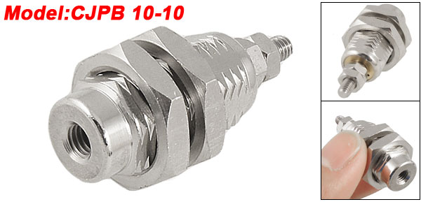 Product Name Thread Pneumatic Cylinder Model CJPB 10-10 Action Type Single Action Fluid Air Bore 10mm/0.39'' Stroke 10mm/0.39'' Max Pressure 1.05 MPa ExternalThread Dia. 14mm/0.55'' Internal Thread Dia. 4mm/0.16'' Overall Size 40 x 23mm/1.57'' x 0.9'' (L*Max.W) Material Metal Color Silver Tone Net Weight 35g Package Content 1 x Thread Pneumatic Cylinder - Reviews