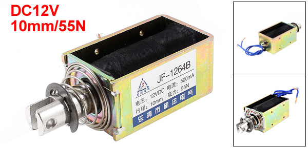 Product Name Solenoid Electromagnet Rated Voltage & Current DC12V 0.5A Power 6W Action Form Push Pull Type Stroke & Force 10mm/55N(5.5Kg)