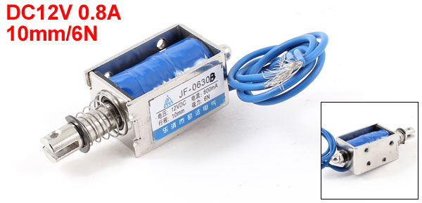 Product Name Solenoid Electromagnet Rated Voltage & Current DC12V 0.8A Power 9.6W Action Form Push Pull Type Stroke & Force 10mm/6N(0.6Kg)