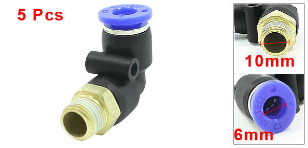 10mm Thread Pneumatic Air Pipe Connectors Elbow Quick Fittings 5 Pcs