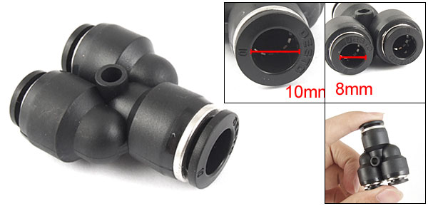 Product Name Pneumatic Quick Fittings Type 10mm to 8mm/ 0. 394" to 0.315"(Y Shape) Material Plastic Dimension (Approx) 44 x 35 x 17mm/ 1.7" x 1.4" x 0.7(L*W) Color Black Weight 19g Package Content 1 x Pneumatic Quick Fittings - Reviews