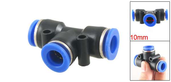 Product Name Pneumatic Quick Fittings Connector Type 10mm to 10mm ( T-shaped) Material Plastic Dimension (Approx) 5 x 3.5 x 1.8cm/ 1.97" x 1.38" x 0.71" (L*W*H) Color Black, Blue Weight 13g Package Content 1 x Pneumatic Quick Fittings - Reviews