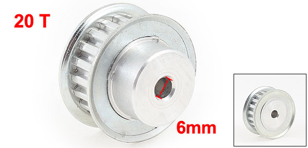 Product Name Timing Pulley Type XL Number of Tooth 20 Pitch 5.08mm/ 0.2" Bore Diameter 6mm/ 0.2" Fit Belt Width 10mm/ 0.4" Overall Size 38x 25mm/1.5" x 1"(D*H) Material Aluminum Color Silver Tone Weight 48g Package Content 1 x Timing Pulley - Reviews