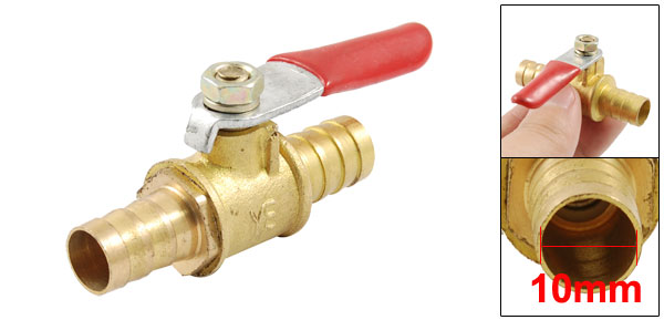 10mm x 10.3mm Hose Tail Pipe Fitting Red Lever Handle Ball Valve