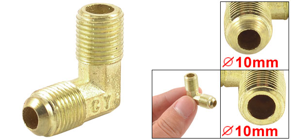 Product Name Air Compressor Elbow Connector Design 90 Degree Male Thread Size 1/8" PT, 1/8" PT Male Thread Diameter 10mm to 10mm Overall Size 23 x 23 x 10mm / 0.9" x 0.9" x 0.3"(L*W*T) Material Metal Color Gold Tone Net Weight 24g Package Content 1 x Air Compressor Elbow Connector - Reviews