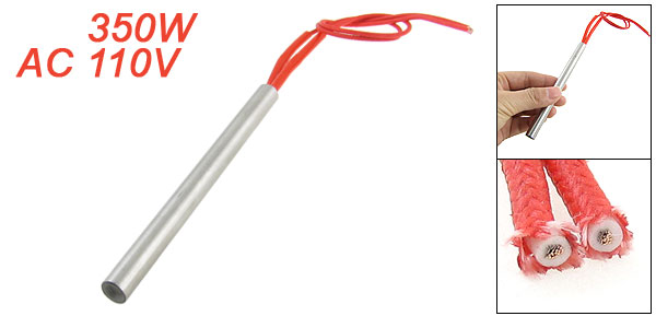 Product Name Cartridge Heater Material Stainless Steel, PVC, Nylon Rated Voltage AC 110V Power 350W Heater Size (Approx.) 10 x 120mm / 0.39" x 4.7" (D * L ) Wire Length (Approx.) 26cm / 10.2" Color Silver Tone, Red Weight 46g Package Content 1 x Cartridge Heater - Reviews
