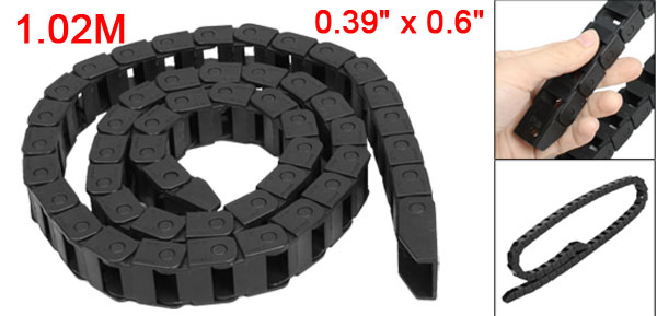 Product Name Cable Drag Chain Material Plastic Internal Size 10 x 15mm / 0.39" x 0.6"(H*W) External Size 15 x 22mm / 0.6" x 0.87"(H*W) Total Length 1.02M / 40.2'' Color Black Weight 180g Package Content 1 x Cable Drag Chain - Reviews