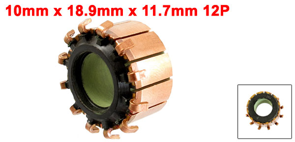 Product Name Motor Commutator Copper Bar Number 12P Total Length 10 x 18.9x 11.7mm/0.4" x 0.7" x 0.5"(ID*OD*T) Material Copper, Feerite Color Copper Tone, Black Net Weight 8g Package Content 1 x Motor Commutator - Reviews