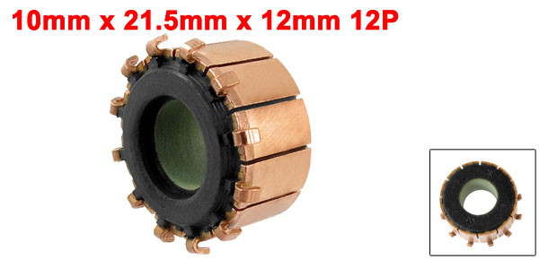Product Name Motor Commutator Copper Bar Number 12P Total Length 10 x 21.5 x 12mm/0.4" x 0.8" x 0.5"(ID*OD*T) Material Copper, Feerite Color Copper Tone, Black Net Weight 10g Package Content 1 x Motor Commutator - Reviews
