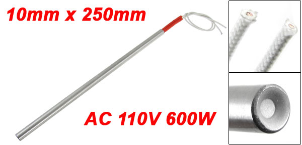 Product Name Cartridge Heater Material Stainless Steel, PVC, Nylon Rated Voltage AC 110V Power 600W Heater Size (Approx.) 10 x 250mm/0.4'' x 9.8'' (D * L)
