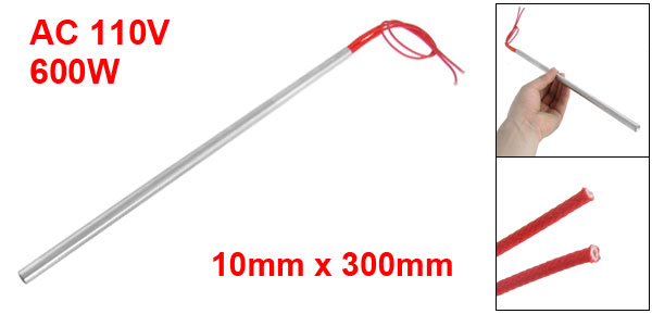 Product Name Cartridge Heater Material Stainless Steel, PVC, Nylon Rated Voltage AC 110V Power 600W Heater Size (Approx.) 10 x 300mm/0.4'' x 11.8'' (D * L) Wire Length (Approx.) 28.5cm / 11.2" Color Red, Silver Tone Weight 102.5g Package Content 1 x Cartridge Heater - Reviews