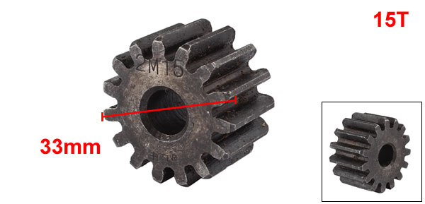 10mm x 33mm x 20mm Module 2 15 Teeth Metal Straight Spur Gear Wheel Gray