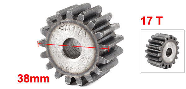 Product Name Gear Teeth Number 17 Module 2 Type Straight Gear Inner Hole Diameter 10mm / 0.39" Outer Dia 38mm / 1.5" Thickness 20mm/0.8" Material Metal Color Gray Net Weight 120g Package Content 1 x Gear - Reviews