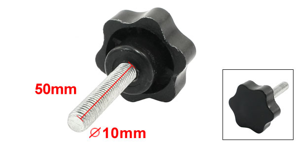 10mm x 50mm Male Thread Screw 43mm Dia Star Shaped Head Clamping Knob