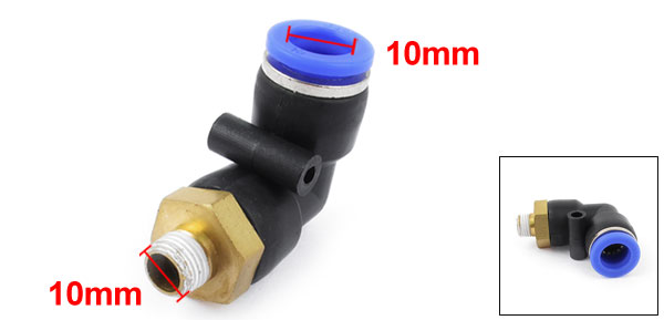 Item Name Pneumatic Quick Fittings Each Overall Size(Approx.) 44 x 37 x 18mm/1.7" x 1.5" x 0.7"(L*W*T) Inner Diameter (Blue End) 10mm/0.4" Thread Diameter 10mm/0.4" Material Brass, Plastic Color Black, Gold Tone, Blue Weight 26g Package Content 1 x Pneumatic Quick Fitting - Reviews