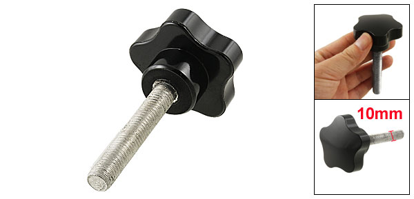 Product Name Star Knob Type Screw On Head Diameter 50mm / 1.96" Thread Length 60mm/ 2.36" Thread Diameter 10mm / 0.39" Total Height 86mm/ 3.38" Material Metal & Plastic Color Silver Tone & Black Weight 79g