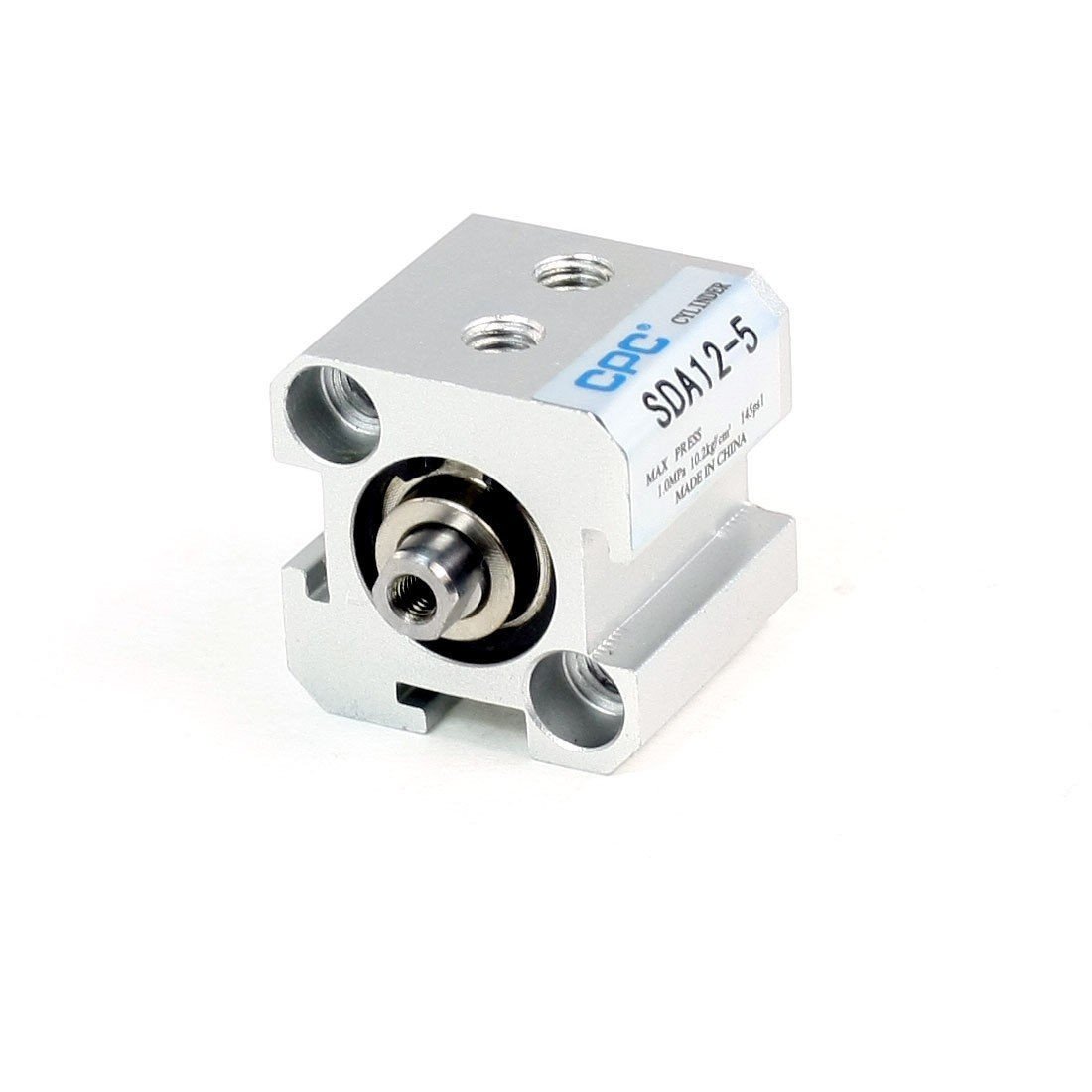 Product Name Air Cylinder Model SDA12x5 Action Type Double Action Bore 12mm Stroke 5mm Max Presssure 1.0Mpa / 10.2Kg/cm² / 145PSI Rod Diameter 6mm / 0.23"' Rod Thread Diameter 2.5mm / 0.1" Air Hole Diameter 4mm / 0.15" Mounting Hole Diameter 6mm / 0.23" Mounting Hole Distance(center to center) 22mm / 0.86"