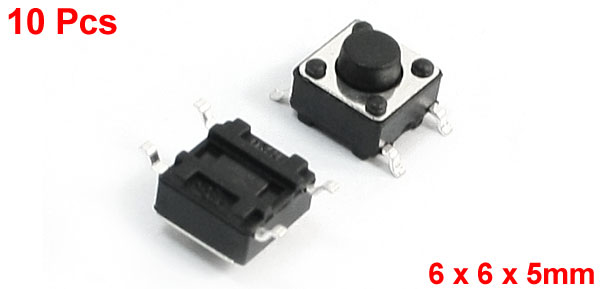 Product Name Tact Switch Action Type Momentary Total Size(Pin No Include) 6 x 6 x 5mm/0.24" x 0.24" x 0.2"(L*W*T) Button Size 3 x 2mm/0.12" x 0.078"(D*H) Material Plastic, Metal Color Black, Silver Tone Net Weight 4g Package Content 10 x Tact Switch - Reviews
