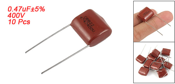 Product Name Metallized Polypropylene Film Capacitor Model CBB22 Dielectric Material Metallized Polypropylene Film Withstand Voltage 400V Capacitance 0.47uF Capacitance Tolerance ±5% Lead Spacing 14mm / 0.55" Total Size (Each) 38 x 16 x 8mm / 1.5" x 0.63" x 0.3" (L*W*T) Weight 20g Color As Picture Shown Package Content 10 x Metallized Polypropylene Film Capacitors - Reviews
