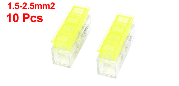 Product Name i-Clamp Cable Connector Type Push In Type Fit Cable 1.5-2.5mm2 Total Size 29 x 11 x 10mm/1.1" x 0.43" x 0.4"(L*W*T) Material Plastic, Metal Color Yellow, Clear Net Weight 30g Package Content 10 x i-Clamp Cable Connector  - Reviews