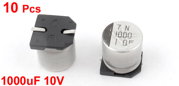 Capacitance 1000uF Tolerance +/-20% Body Size 10mm x 10mm/ 0.4" x 0.4"(D*H) Total Weight 14g Main Color Silver Tone, Black Package Content 10 x SMD Electrolytic Capacitors - Reviews