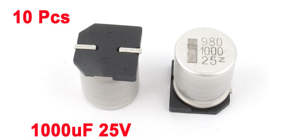 Capacitance 1000uF Tolerance +/-20% Body Size 12mm x 13mm/ 0.45" x 0.5"(D*H) Total Weight 28g Main Color Silver Tone, Black Package Content 10 x SMD Electrolytic Capacitors - Reviews