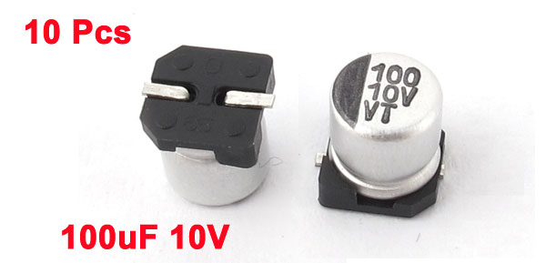 Capacitance 100uF Tolerance +/-20% Body Size 5mm x 6mm/ 0.2" x 0.24"(D*H) Total Weight 2g Main Color Silver Tone, Black Package Content 10 x SMD Electrolytic Capacitors - Reviews