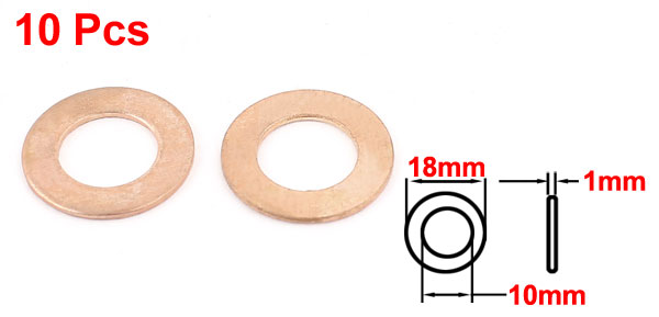 Details10Pcs 10mmx18mmx1mm Copper Crush Washer Flat Ring Gaskets Fitting  Product Name Copper Washer Inner Diameter 10mm/0.4" Outer Diameter 18mm/0.71" Thickness 1mm/0.04" Material Copper Color Copper Tone Weight 14g Package Content 10 Pcs x Copper Washer