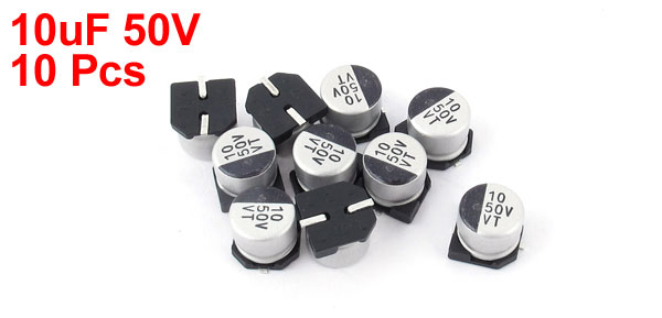 Capacitance 10uF Tolerance +/-20% Body Size 6mm x 5mm/ 0.24" x 0.2"(D*H) Total Weight 4g Main Color Silver Tone, Black Package Content 10 x SMD Electrolytic Capacitors - Reviews