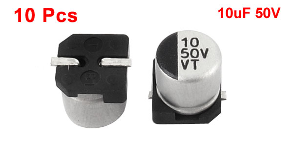 Capacitance 10uF Tolerance +/-20% Body Size 5mm x 6mm/ 0.2" x 0.24"(D*H) Total Weight 3g Main Color Silver Tone, Black Package Content 10 x SMD Electrolytic Capacitors - Reviews