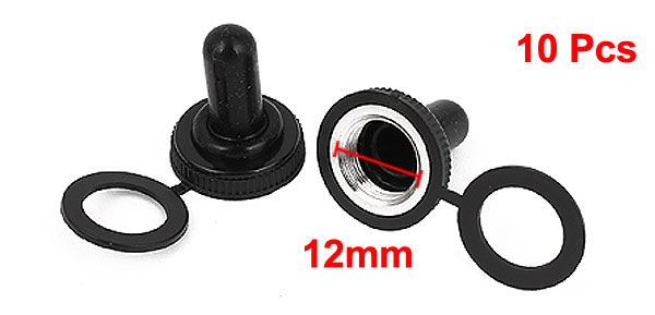 Product Name Toggle Switch Cover Threaded Hole Diameter 12mm / 0.43" Overall Size 21 x 23mm / 0.83" x 0.9"(D*H) Material Rubber, Plastic, Metal Color Black Net Weight 35g Package Content 10 x Toggle Switch Covers - Reviews