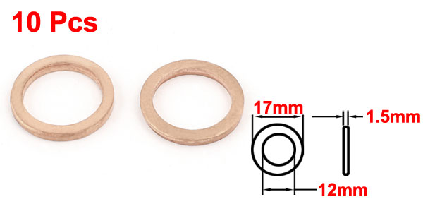 10Pcs 12mmx17mmx1.5mm Copper Crush Washer Flat Ring Gasket Fitting