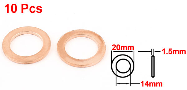 10pcs 14mm Inner Dia 1.5mm Thickness Copper Flat Washer Oil Brake Seal Fitting