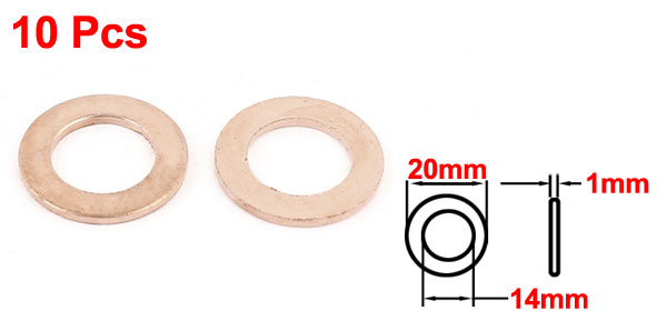 10pcs 14mmx20mmx1mm Copper Flat Washer Ring Oil Brake Line Seal Fitting Fastener