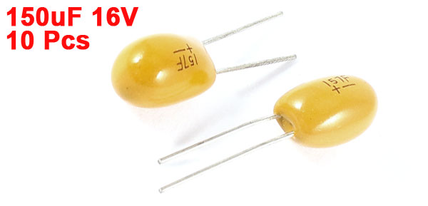 10PCS 150uF 16V 2 Pin Yellow Radial Dipped Tantalum Bead Capacitors